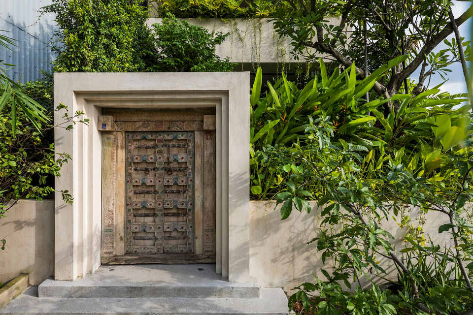 L28 Cửa gỗ cổ điển với các nút hoa bằng đồng